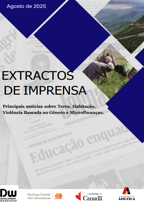 O Extracto de imprensa é um produto do Centro de Documentação da Development Workshop Angola que desde 2001 tem estado a trabalhar na recolha, no armazenamento e na disseminação de informação sobre desenvolvimento socioeconómico do País. Deste modo este documento é uma compilação dos extratos de imprensas mensais onde vem selecionado noticias relacionadas com a terra, habitação, meios de subsistência, ambiente e violência do género.