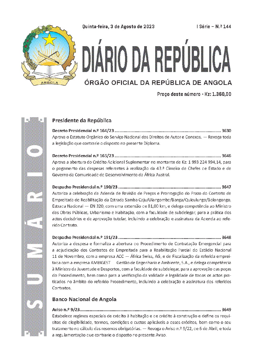 Aviso do Banco Nacional de Angola n.º 9-23 de 3 de Agosto – sobre Credito Habitacional August 3, 2023