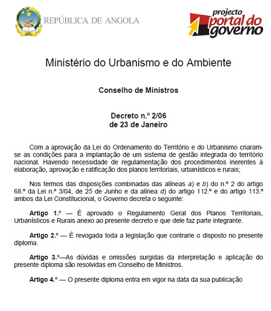 Decreto 02-06 Regulamento Geral dos Planos Territoriais Urbanisticos e Rurais