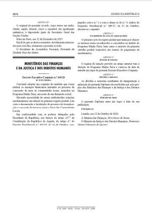Decreto Executivo Conjunto n.º 249-20 – Gratuitidade do registo predial A Minha Terra