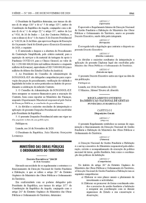 Decreto Executivo n.º 266-20 – Regulamento Interno da Direcção Nacional de Gestão Fundiária e Habitação