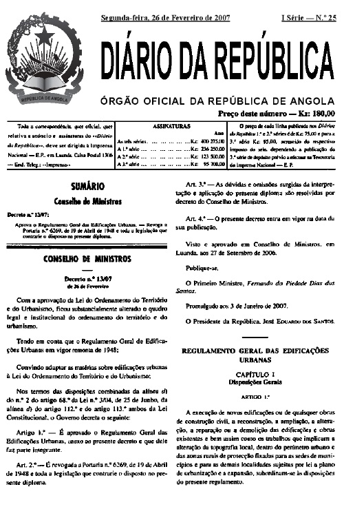 Decreto nº 13-07 Regulamento Geral das Edificações Urbanas