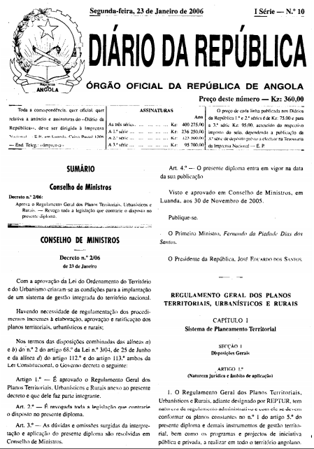 Decreto n.º 2-06 de 23 de Janeiro – Planos Territoriais, Urbanísticos e Rurais