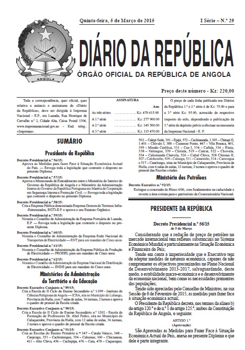 Decreto Presidencial de 5 de Março de 2015 Sobre Empresa Gestora de Terrenos Infraestruturados (EGTI)