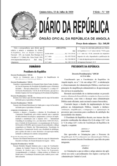 Decreto Presidencial n. 0 190/20: