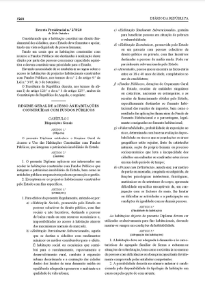 Decreto Presidencial n.º 278-20 de 26 de Outubro – Acesso das Habitações construídas com Fundos Públicos