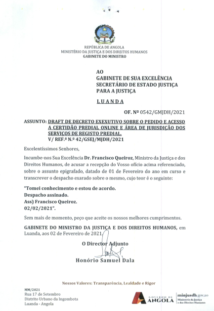 Despacho 0542 Draft de Decreto Executivo Sobre a Certidão Predial Online