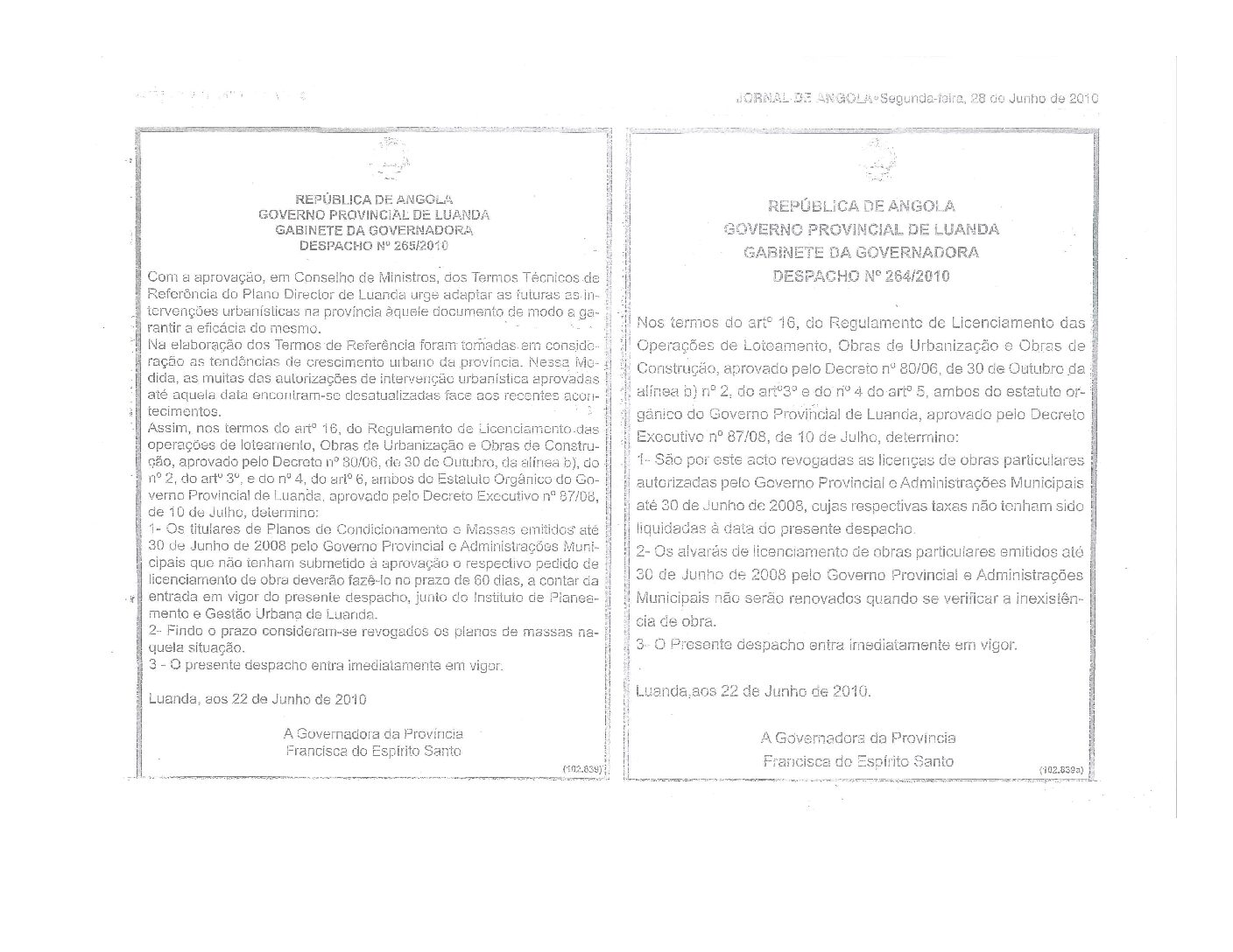Despacho 264-10 – Governo Provincial de Luanda – Revogacao de Licencias de Obras