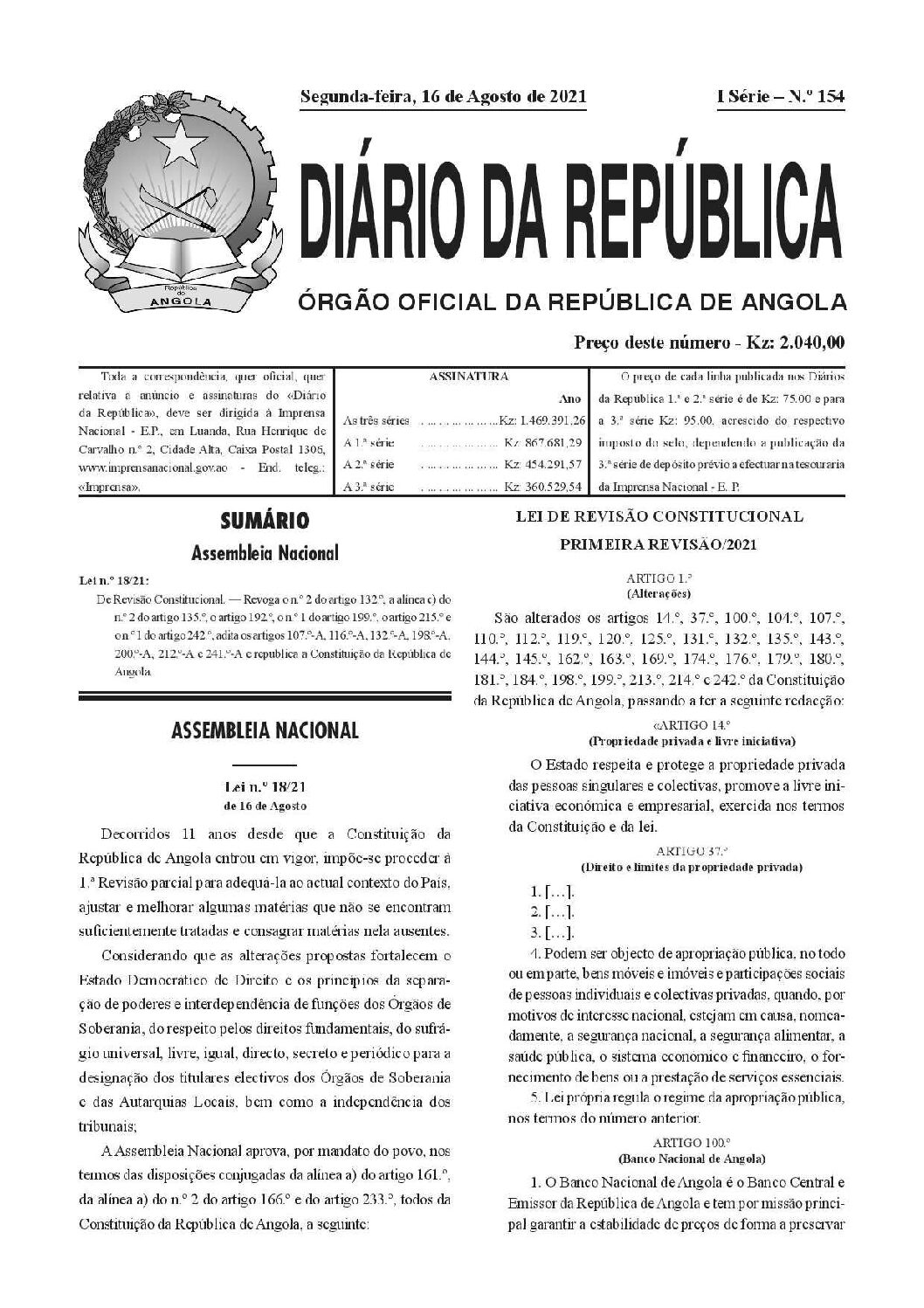 Lei n.º 18-21 de 16 de Agosto – Revisão da Constituição