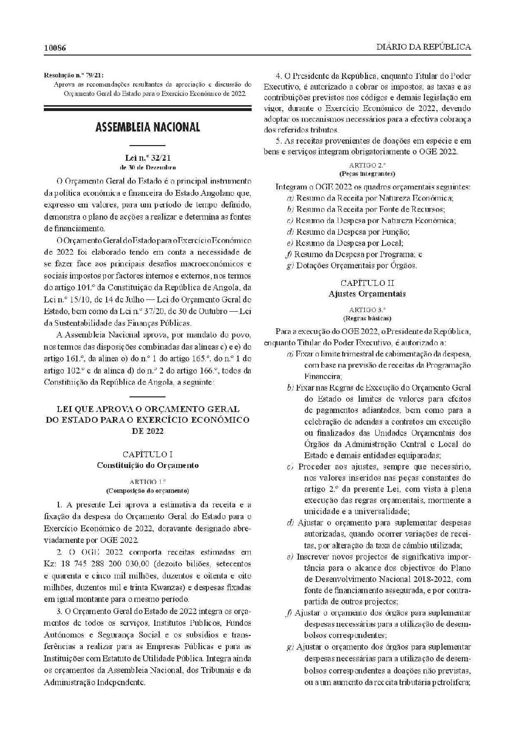 Lei n.º 32-21 de 30 de Dezembro – Orçamento Geral do Estado de 2022