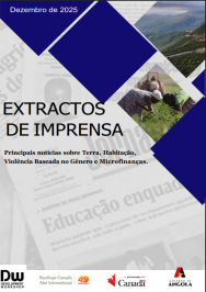 O Extracto de imprensa é um produto do Centro de Documentação da Development Workshop Angola que desde 2001 tem estado a trabalhar na recolha, no armazenamento e na disseminação de informação sobre desenvolvimento socio-económico do País. O Extrato tem uma periodicidade mensal onde os especialistas da DWA recolhem os distintos jornais diários que circulam na...